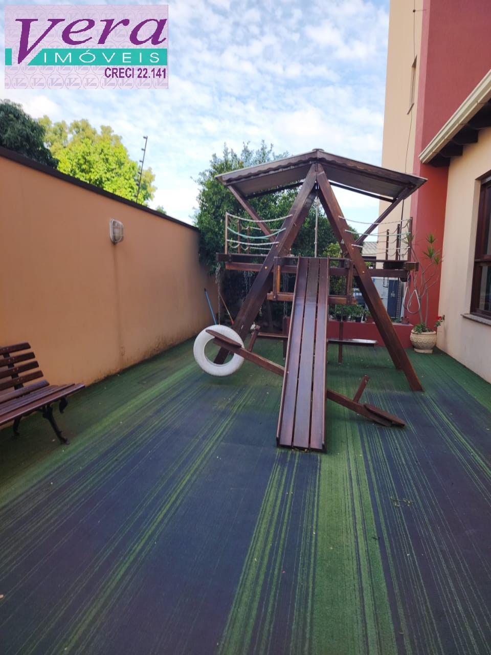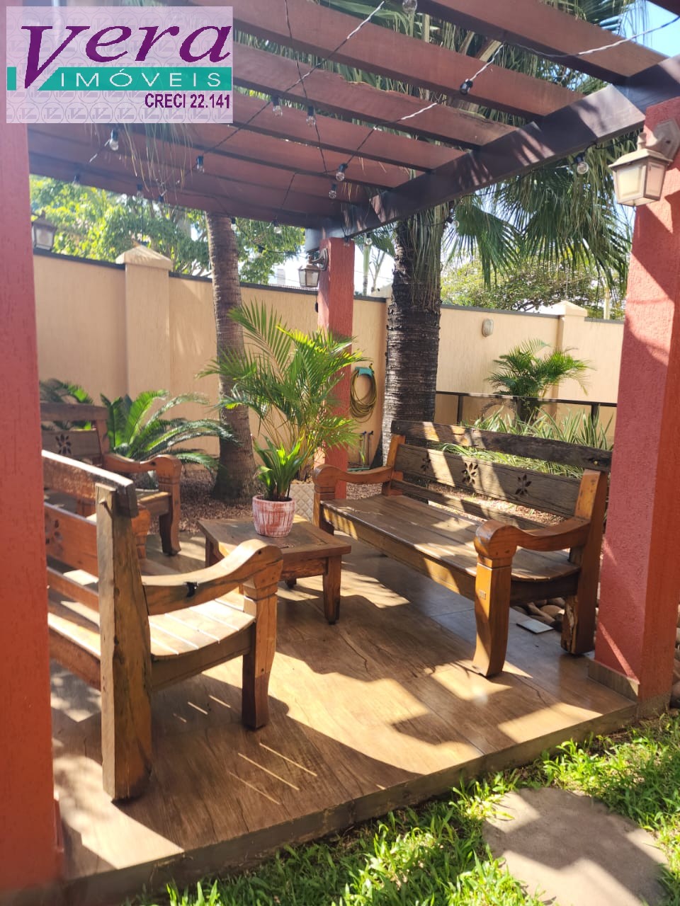 - lindo jardim com piscina e pergolado,
