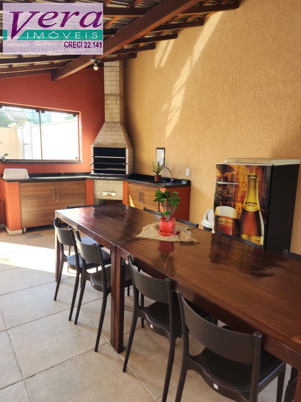 lareira, churrasqueira, cozinha e área de serviço independentes, despensa, 02 vagas de garagem.