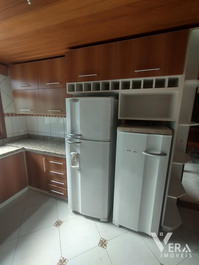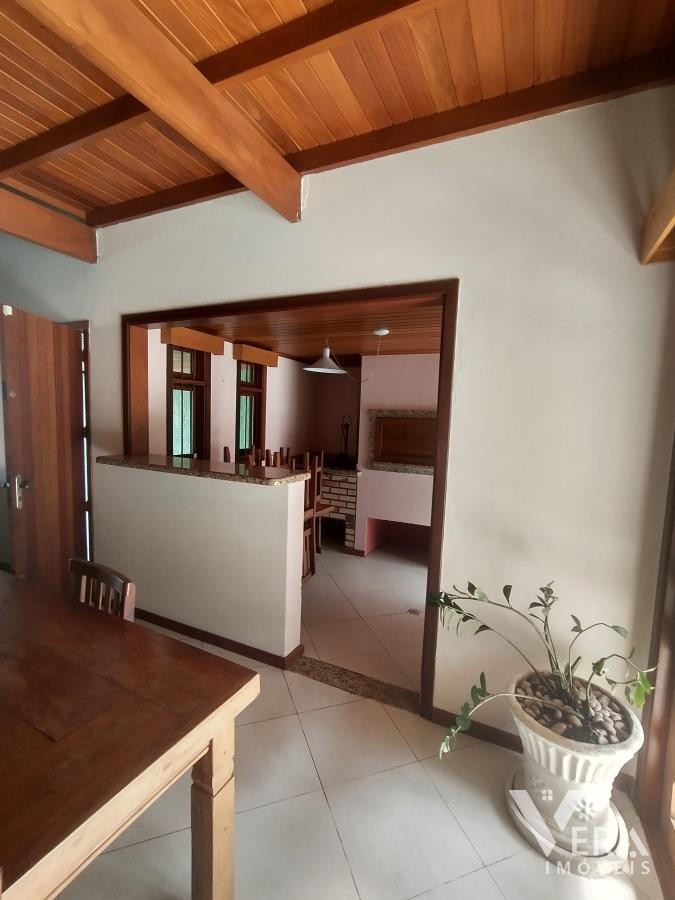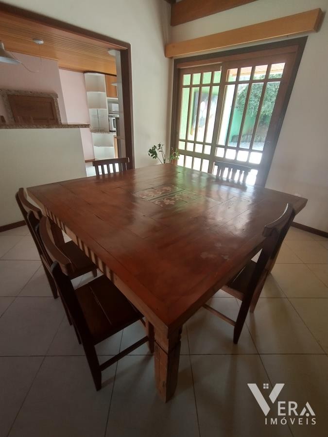 Casa de alvenaria com 2 dormitórios, sendo 1 suíte, e sala de estar/jantar conjugada espaçosa, perfeita para o seu conforto. A cozinha, com acabamento em granito, conta com churrasqueira e fogão campeiro, ideal para momentos de convivência. Com móveis planejados, aberturas em louro-freijo e excelente acabamento, a residência oferece um mesanino em madeira de lei, lavanderia, varandas frontal e fundos, garagem e jardins bem cuidados com cerca eletrônica.