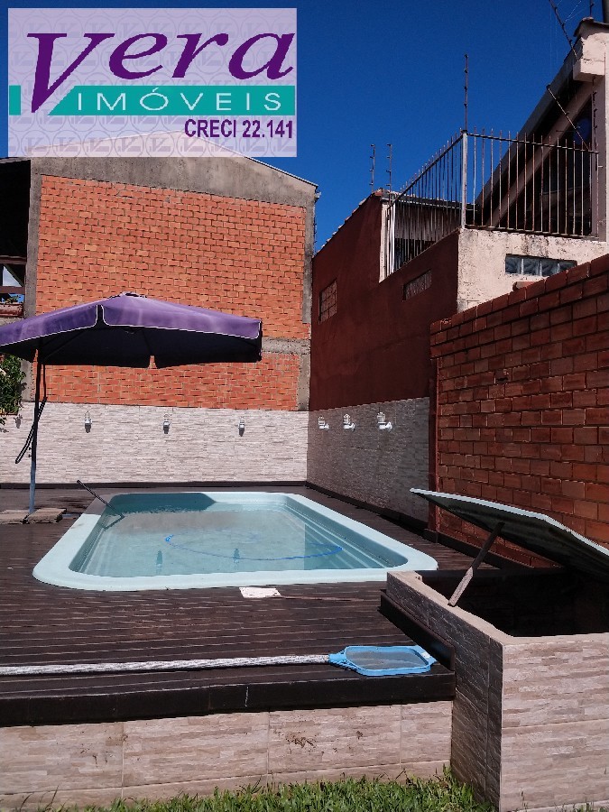 casa com 03 dormitórios, 01 banheiro, sala de estar, sala de jantatar, 01 vaga de garagem coberta, pátio aos fundos quiosque e piscina,