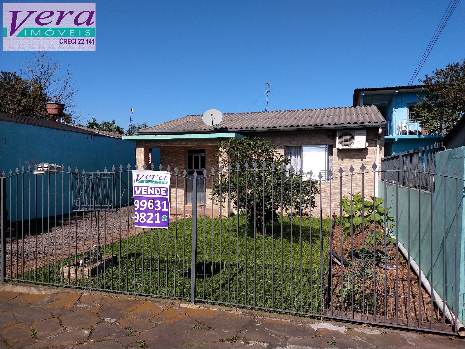 Imóvel de 02 dormitórios, sala de estar, sala de jjantar, banheiro social, área de serviço aos fundos, amplo pátio frontal,
